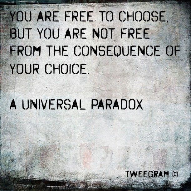 You have freedom of choice – but choice has consequences. Sometime living with the consequences of choice is hard.